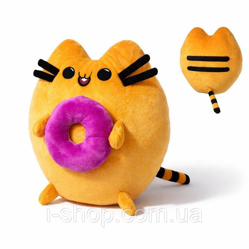 М'яка іграшка кіт Пушин з пончиком 26см пухнаста плюшева іграшка для обіймів і подарунка дітям